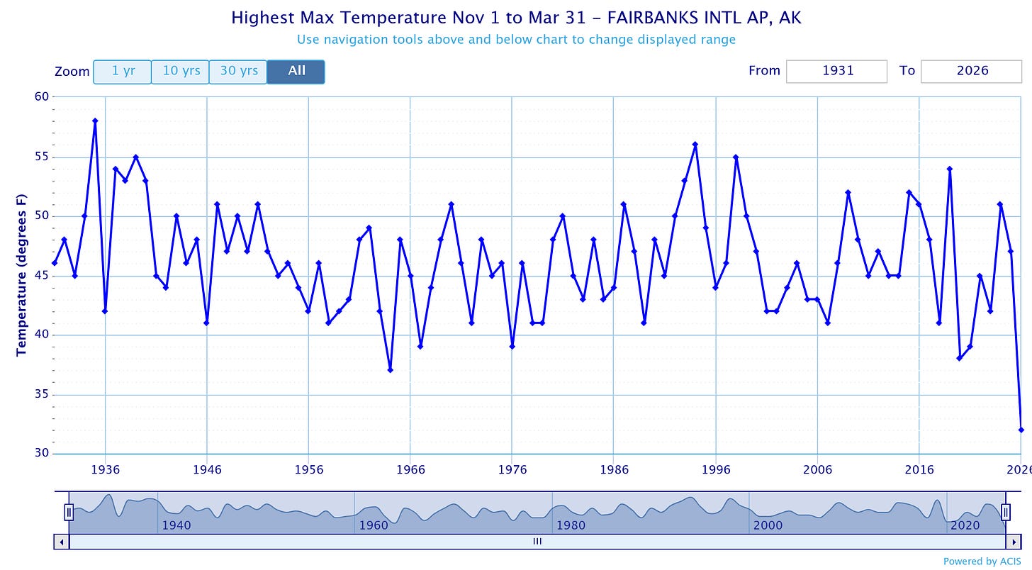 Fairbanks vient d'enregistrer sa période décembre-mars la plus froide jamais enregistrée.