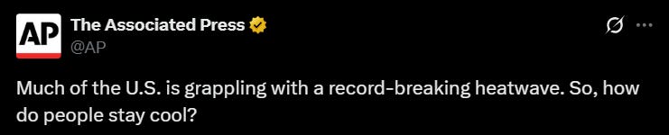 Alors que AP News affirme "qu'une grande partie des États-Unis est aux prises avec une vague de chaleur record". C'est faux !