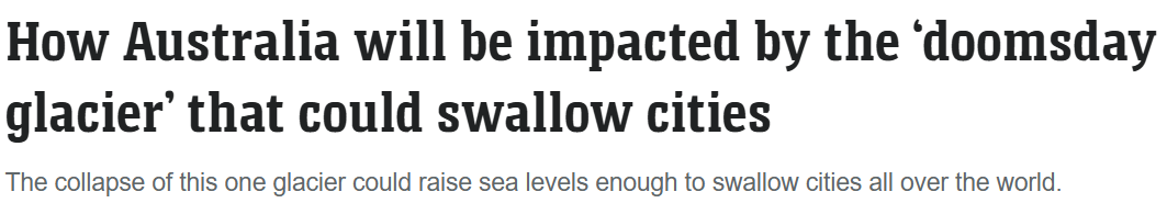 Les médias reviennent sur le glacier Thwaites en Antarctique, le qualifiant de glacier "le plus important" du monde, de glacier "le plus risqué", de "glacier de l'apocalypse", affirmant qu'il pourrait inonder des villes en cas d'effondrement.