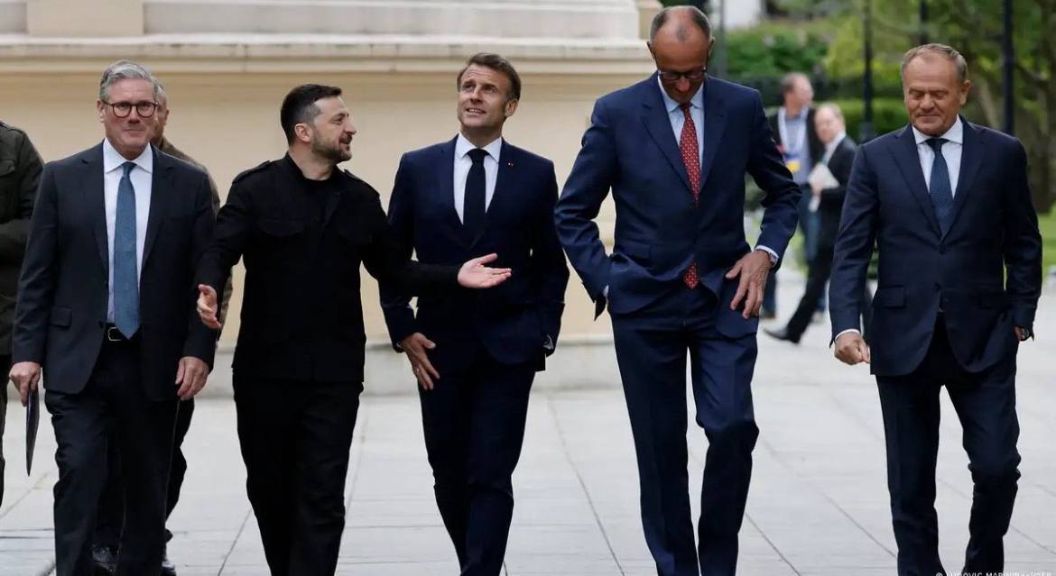 Si Zelensky est la première victime, c'est parce que l'enquête américaine sur la corruption liée aux disparitions de centaines de milliards de dollars en Ukraine va impliquer tous les dirigeants de la "coalition des volontaires", notamment Macron, le Ministre Canadien de la Justice Mark Carney, le Ministre Britannique de la Justice Keir Starmer et le Chancelier Allemand Friedrich Merz, comme on peut le voir sur la photo ci-dessous.