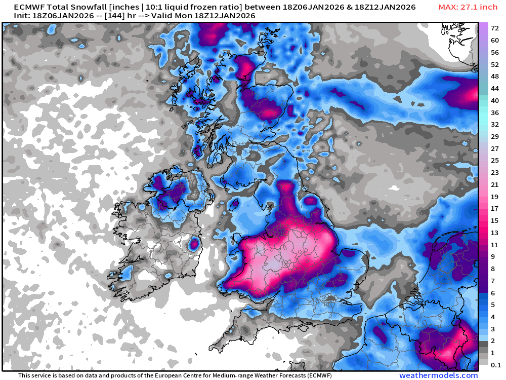 De nombreux pays, dont le Royaume-Uni, pays maritime par excellence, ont déjà connu d'importantes chutes de neige depuis le début de l'année. Au 5 janvier – donc avant les dernières averses –, la couverture neigeuse en Europe atteignait son niveau le plus élevé pour cette date depuis 2019.