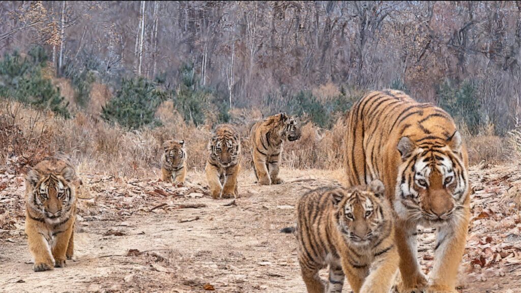Enfin, cette semaine, nous aimerions partager cette photo d'une tigresse et de ses cinq petits, filmée dans un parc national récemment créé dans le nord-est de la Chine.