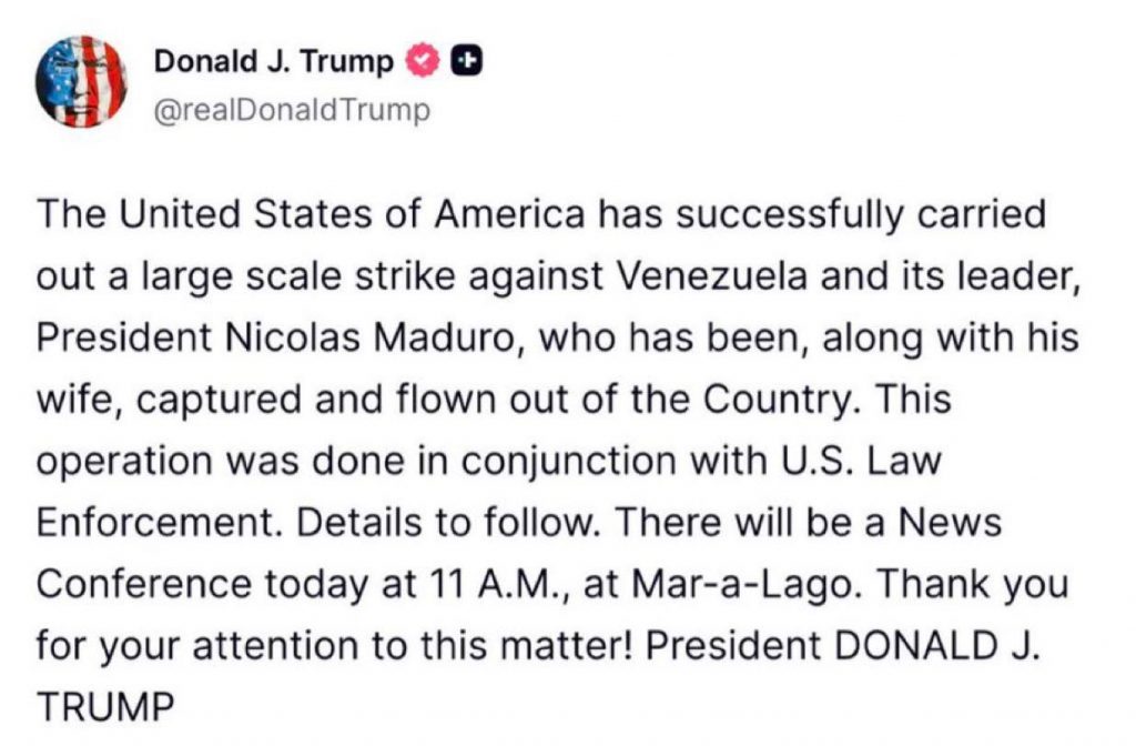 Puis vint l'annonce : le Président Trump a confirmé que Nicolás Maduro et son épouse Cilia Flores avaient été capturés et exfiltrés par les forces américaines.