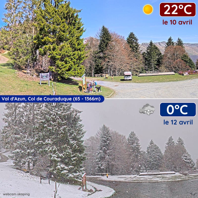 De même, sur le continent, un autre "basculement" extrême s’est produit, particulièrement visible au Col de Couraduque (1.366 m) dans les Pyrénées :
