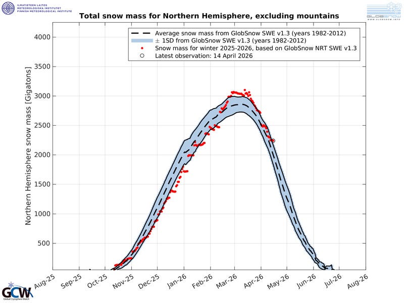 Dans tout l'hémisphère Nord, l'enneigement reste élevé pour la saison.
